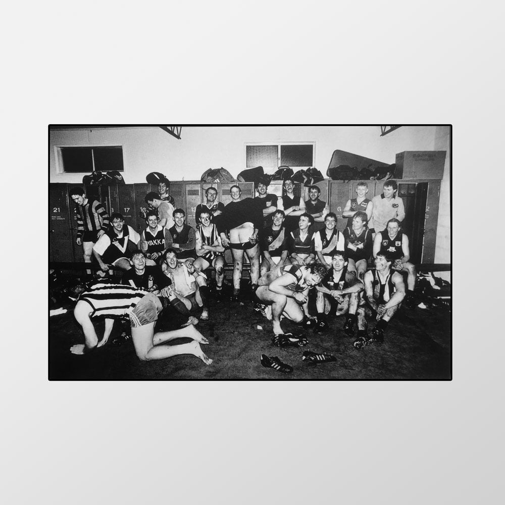 This was the end of the final football training session of the year, and it had not been a good season for the Port Fairy team. The evening was dark, raining, and half of the Port Fairy oval floodlights had blown. But none of these dismal events seemed to dull the spirits of this eternally optimistic footy team. By the time I arrived in the changing rooms the beer was flowing, and the laughing and shouting deafening. When I asked for a formal team portrait, this was the result.